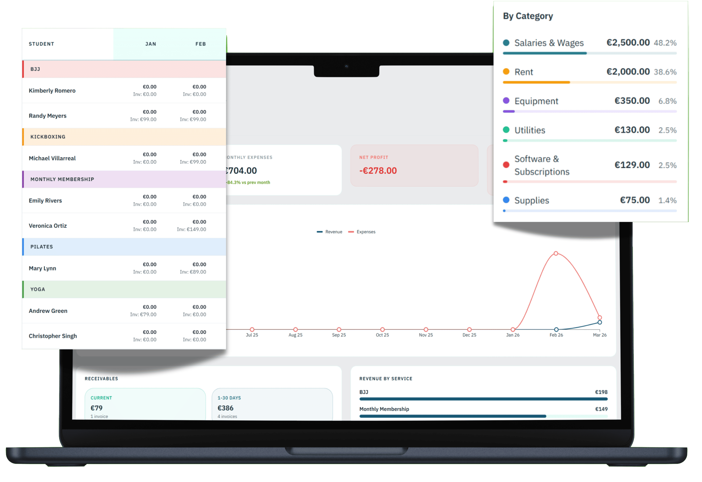 Running an independent studio shouldn’t mean spending your evenings on invoices, attendance sheets, and payment chasing.
