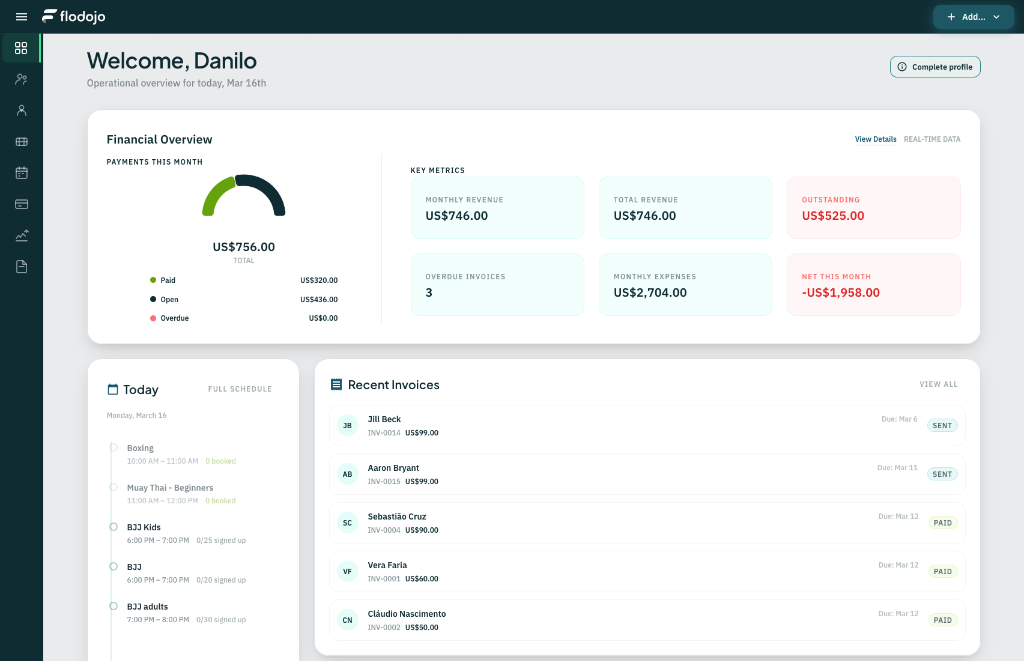 With Flodojo you track members, payments, classes, and cash flow — quickly and effortlessly. Automate the admin. Focus on what you do best.